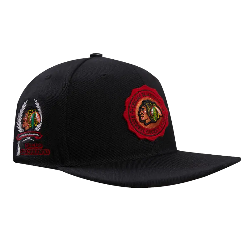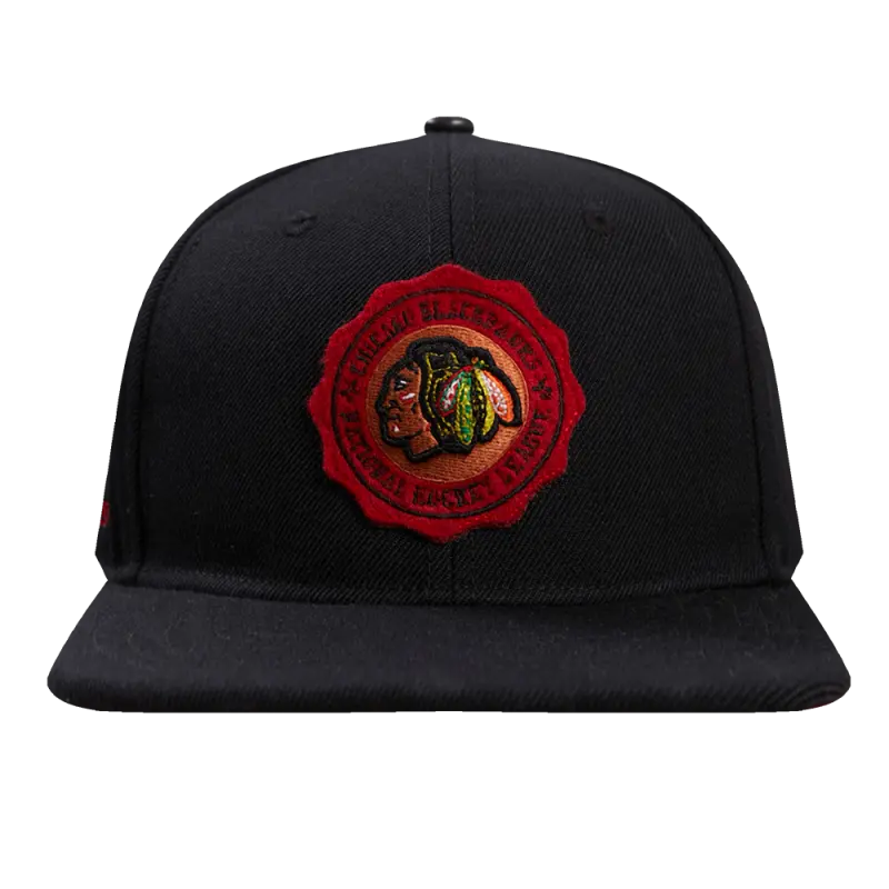 NHL CHICAGO BLACKHAWKS CREST EMBLEM WOOL SNAPBACK HAT (BLACK)
