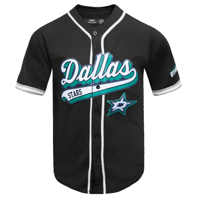 NHL DALLAS STARS SCRIPT TAIL MEN’S MESH BUTTON DOWN SHIRT (BLACK\/GRAY)