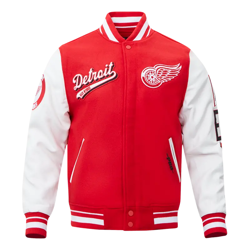 NHL DETROIT RED WINGS SCRIPT TAIL WOMEN’S WOOL VARSITY JACKET (RED\/BLACK)
