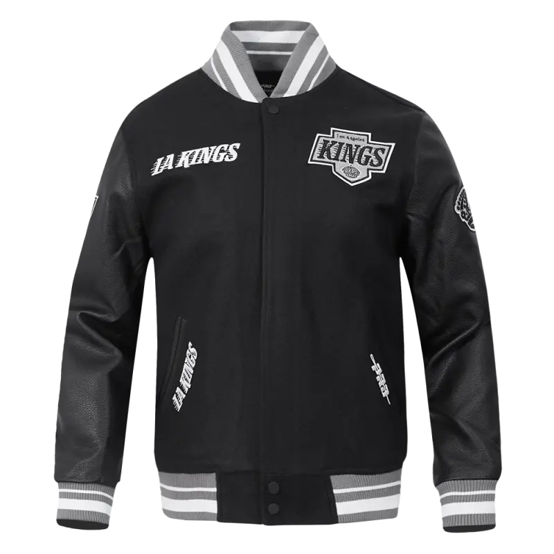 NHL LOS ANGELES KINGS MASHUP MEN’S RIB WOOL VARSITY JACKET (BLACK\/GRAY)
