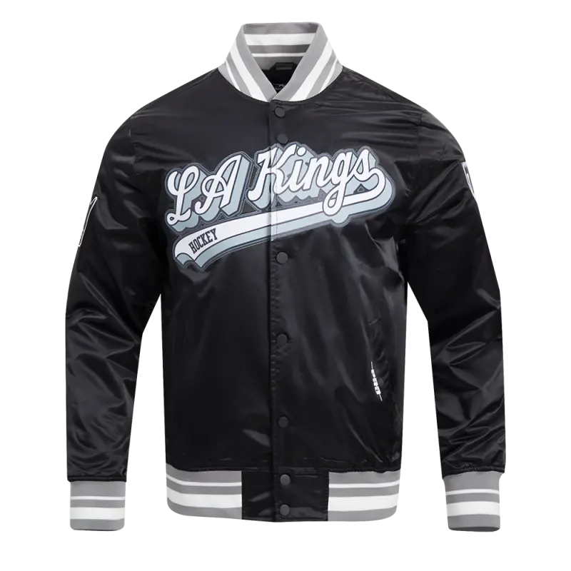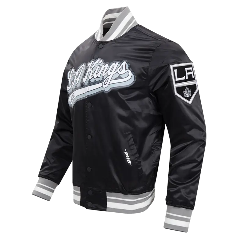 NHL LOS ANGELES KINGS SCRIPT TAIL MEN’S SATIN JACKET (BLACK\/GRAY)