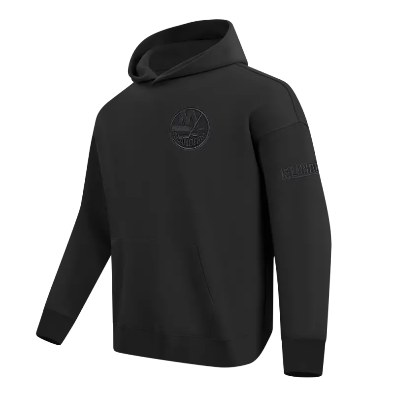 NHL NEW YORK ISLANDERS NEUTRAL MEN’S DROP SHOULDER FLEECE PULLOVER HOODIE (BLACK)