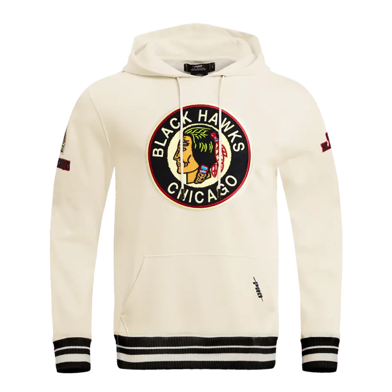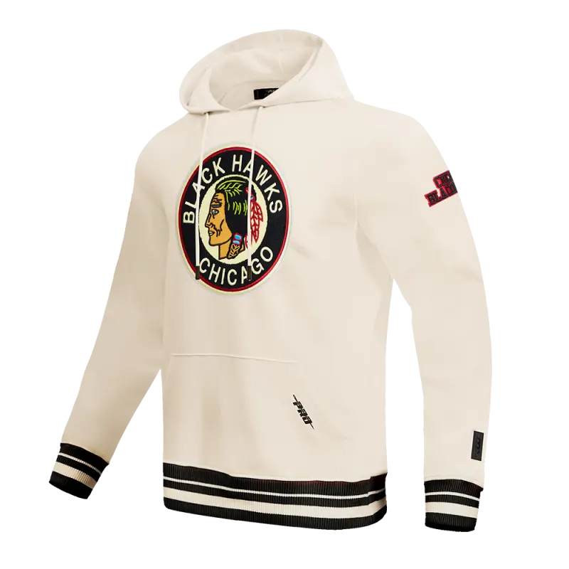 NHL CHICAGO BLACKHAWKS RETRO CLASSIC MEN’S FLEECE PULLOVER HOODIE (EGGSHELL\/ BLACK)