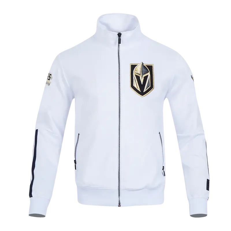 NHL VEGAS GOLDEN KNIGHTS CLASSIC CHENILLE MEN’S DOUBLE KNIT TRACK JACKET (WHITE\/BLACK)