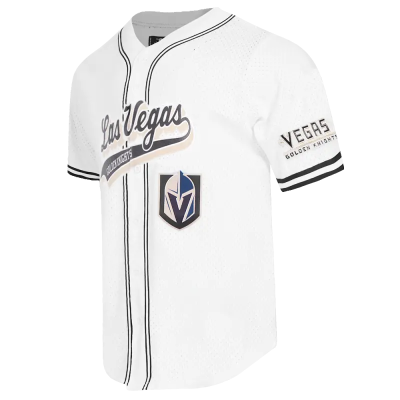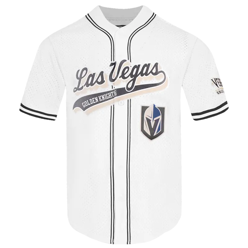 NHL VEGAS GOLDEN KNIGHTS SCRIPT TAIL MEN’S MESH BUTTON DOWN SHIRT (WHITE\/BLACK\/WHITE)