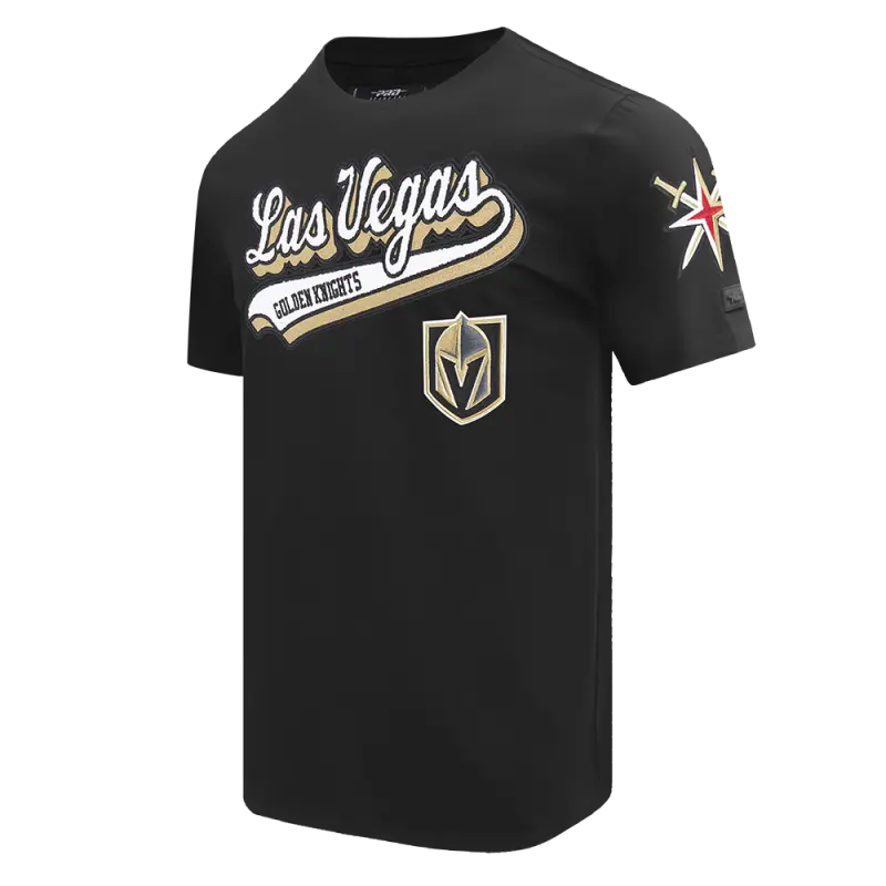 NHL VEGAS GOLDEN KNIGHTS SCRIPT TAIL MEN’S SINGLE JERSEY TEE (BLACK)