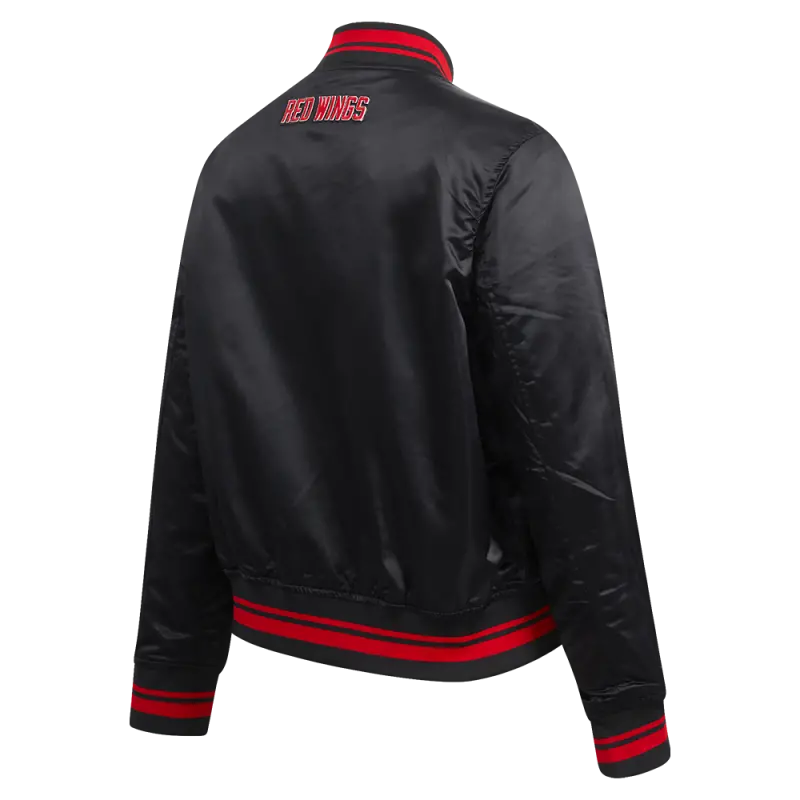 NHL DETROIT RED WINGS SCRIPT TAIL WOMEN’S SATIN JACKET (BLACK\/RED\/BLACK)