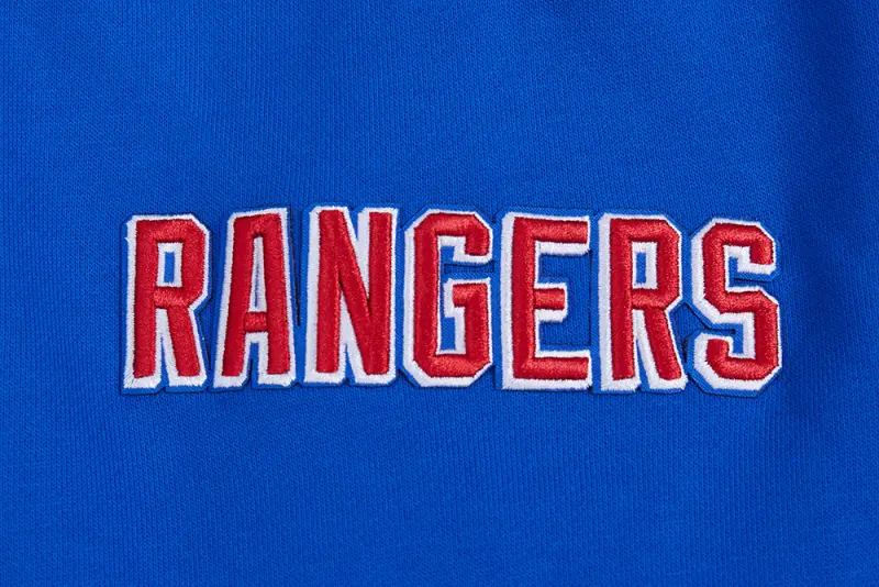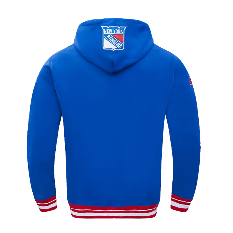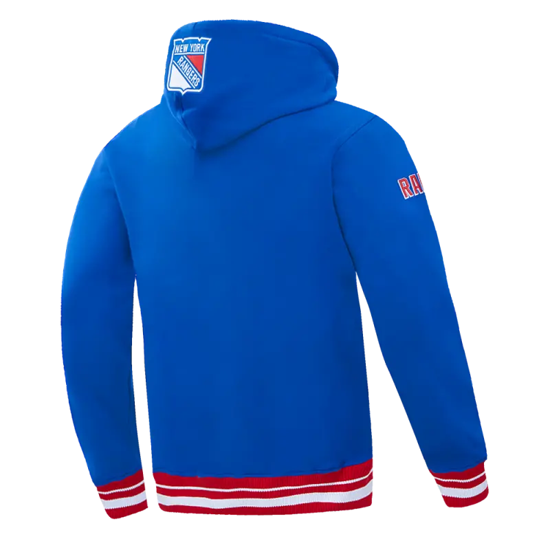 NHL NEW YORK RANGERS SCRIPT TAIL MEN’S RIB FLEECE PULLOVER HOODIE (ROYAL BLUE\/RED)